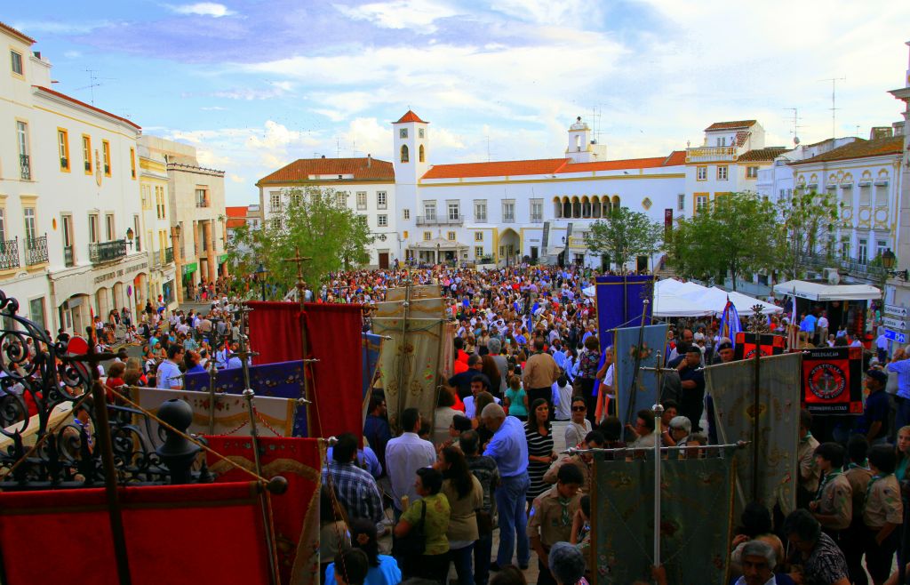 A romaria tem início no dia 20 de Setembro, começando com a chamada Procissão dos Pendões. A procissão inicia-se por volta das dezoito horas, saindo da Igreja de Nossa Senhora da Assunção, antiga Sé de Elvas e da Ermida de Nossa Senhora das Dores. No cortejo, que tem a duração de cerca de três horas, incorporam-se, ao som dos hinos de três bandas filarmónicas, com destino ao Santuário do Senhor da Piedade, os estandartes e pendões representativos de todas as paróquias, irmandades e confrarias do concelho de Elvas, da Câmara Municipal, das unidades militares sediadas na cidade, dos Bombeiros Voluntários e outras colectividades importantes, todas elas precedendo o pendão da Confraria do Senhor Jesus da Piedade, que encerra o cortejo.
